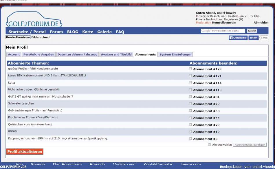 Also ich bekomm immer wieder Mails. Kann man diese Abos den nicht DAUERHAFT löschen? Sobald ich in einen neuen Fred poste steht das auf der ABOLISTE und ich bekomm ne Mail. Das war aber schonmal NICHT so.