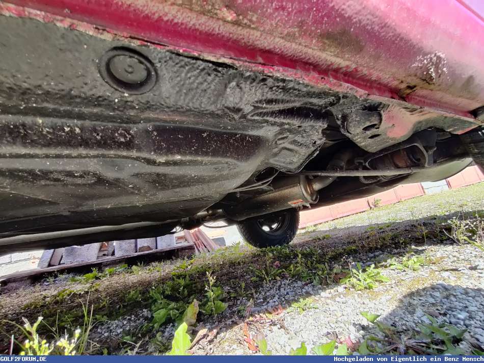 Hey Forumsmitglieder, bin neu hier. Eigentlich komm ich, wie aus meinem Nickname zu schließen ist, aus der Benz Fraktion. Genauer gesagt fahr ich für gewöhnlich W201. Vor ein-zwei Wochen hab ich allerdings von einer Arbeitskollegin meines Vaters ihren alten Golf angeboten bekommen, für sage und schreibe 500 Euronen. Damit war klar, das Auto für nächstes Jahr Pothole Rodeo war gefunden. Gesagt, getan heute hab ich den Karren abgeholt. Es handelt sich bei dem Fahrzeug um einen 87er (oder 88er, Typenschein krieg ich erst morgen) 1,3L Einspritzer, Dreitürer in der Originalfarbe Verkehrspurpur LH4A.