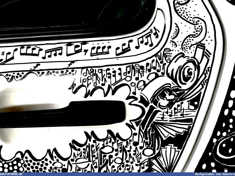 Mein Golf2 Memphis den ich so liebevoll bemalt habe steht nun zum Verkauf bei Ebay. Einzigartige künstlerische Bemalung mit Edding und dann mit UV-Schutz lackiert.